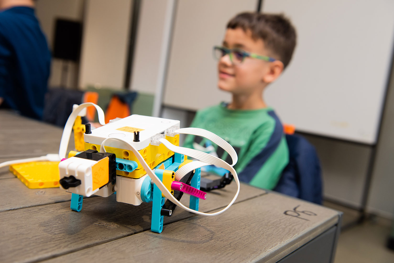 С децата на възраст 7-12 използваме LEGO EV3 и по-новата версия LEGO Spike. Тези платформи са специално разработени от LEGO като тяхната цел е да помага на децата лесно да навлязат в света на роботиката. Многото части предоставят лесен начин да се направят разнородни конструкции и да се обяснят основополагащи принципи в механиката и роботиката.